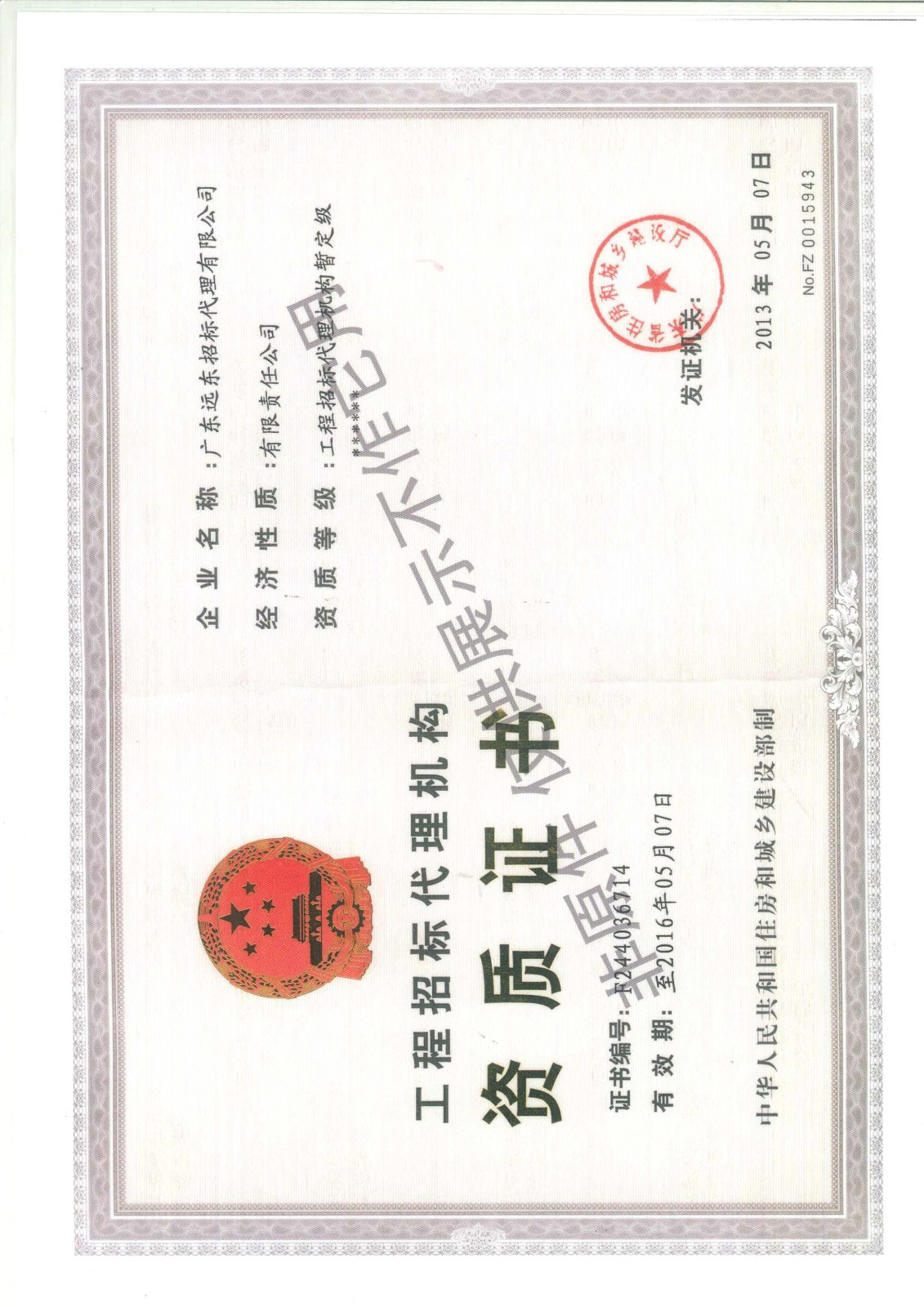 廣東省建設(shè)行業(yè)資信證書暫定級(jí)